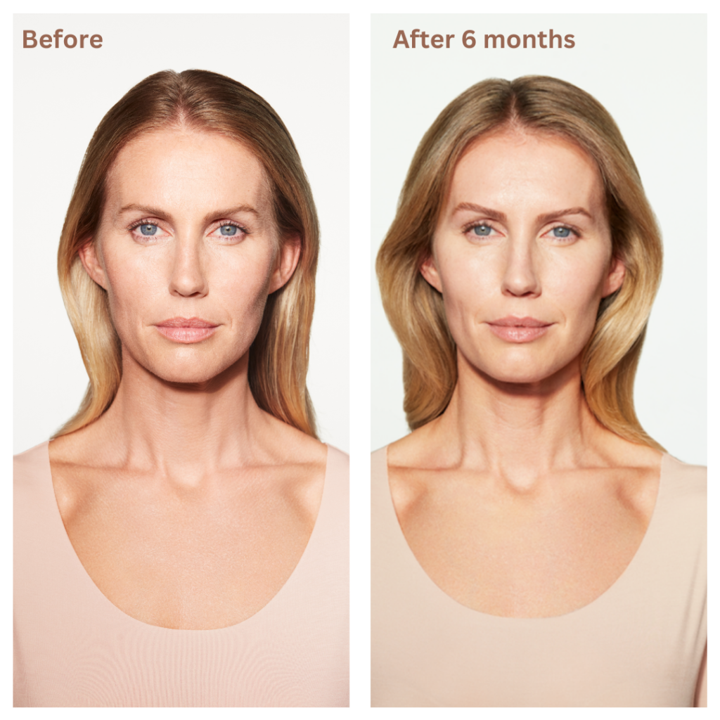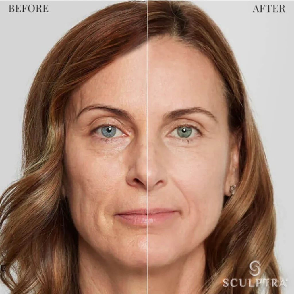 Sculptra is injected into areas of collagen loss to stimulate your body’s natural collagen production. Over the following weeks and months, your skin gradually rebuilds structure and volume from within.